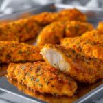 While the chicken marinates, combine all your dry ingredients in a shallow dish: flour, panko breadcrumbs, Parmesan cheese, ranch seasoning, paprika, garlic powder, onion powder, and if you’re feeling adventurous, cayenne pepper for an extra kick. Generously season with salt and pepper to bring out every flavor in this crunchy coating mix. This mixture is vital because it delivers that crave-worthy crisp exterior, locking in the juicy goodness within.