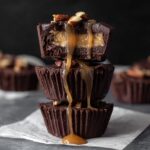 Indulge in these rich and luscious Caramel Chocolate Cups, featuring a creamy coconut milk caramel filling with a hint of vanilla, nestled in a decadent vegan dark chocolate shell. Topped with maple-glazed pecans, these sweet treats combine smooth textures and deep flavors perfect for plant-based dessert lovers.