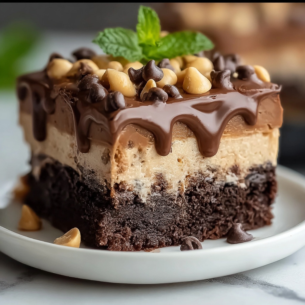 For a party or potluck, slice the cake into bite-sized squares and serve on decorative toothpicks. Another fun idea is to layer individual servings in clear cups, showing off the chocolate, peanut butter, and cream layers for a stunning visual treat.