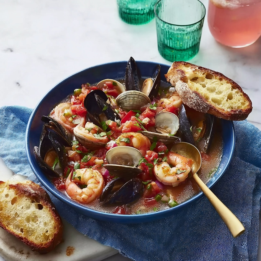 Want to impress guests? Serve your Classic Seafood Cioppino Recipe in charming individual terracotta bowls or rustic soup crocks for a cozy feel. Garnish with edible flowers or microgreens to elevate presentation. Offering small bowls of grated Parmesan or chili oil on the side can also let everyone personalize their bowls, making the meal interactive and fun.