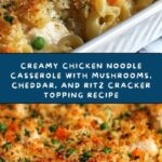 Creamy Chicken Noodle Casserole With Mushrooms, Cheddar, and Ritz Cracker Topping Recipe