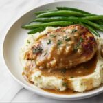 This French Onion Chicken recipe combines tender, seared chicken breasts with sweet, caramelized onions and a rich cheesy topping. Finished in the oven, it’s a comforting and flavorful dish perfect for a weeknight dinner or special occasion. The combination of Gruyère cheese, white wine, and fresh herbs elevates the classic French onion flavors into a hearty main course.