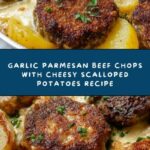 Savor the rich and comforting flavors of Garlic Parmesan Beef Chops paired with creamy, cheesy scalloped potatoes. This hearty meal features tender beef chops seasoned with garlic, parmesan, and Italian herbs, while the scalloped potatoes are layered in a luscious combination of cream, milk, cheddar, and parmesan cheese for a satisfying family dinner.