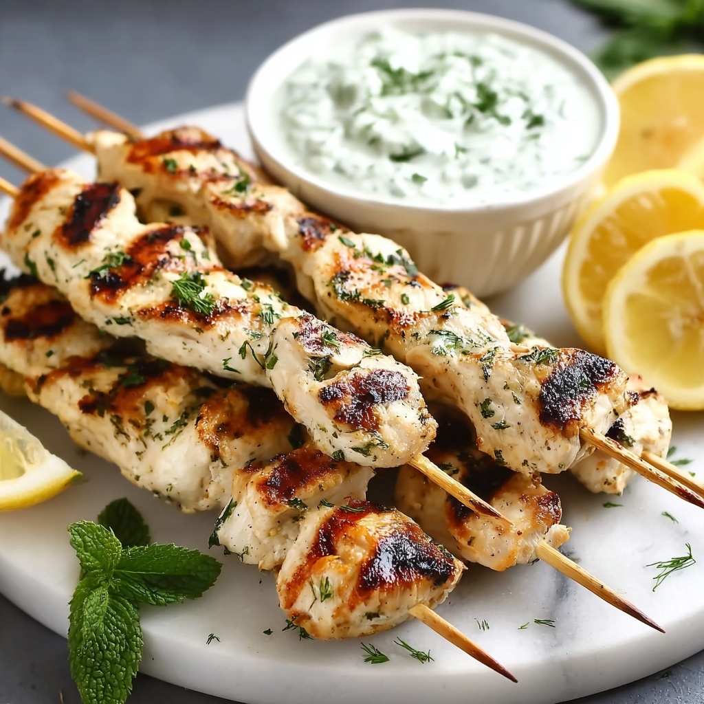 Reheat your cooked skewers gently in a grill pan or oven to retain moisture and prevent drying out. Avoid microwaving if possible as it can make the chicken rubbery. Serve fresh tzatziki alongside after reheating for the best experience.
