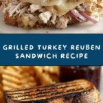 A delicious and hearty Grilled Turkey Reuben Sandwich featuring layers of sliced turkey breast, Swiss cheese, and tangy sauerkraut, all between slices of rye bread slathered with Thousand Island dressing and grilled to golden perfection.