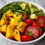 A vibrant and refreshing Mango, Avocado, and Tomato Salad with a zesty citrus dressing that perfectly balances creamy, sweet, and tangy flavors. This easy-to-make salad is perfect as a light lunch or a side dish for any meal.