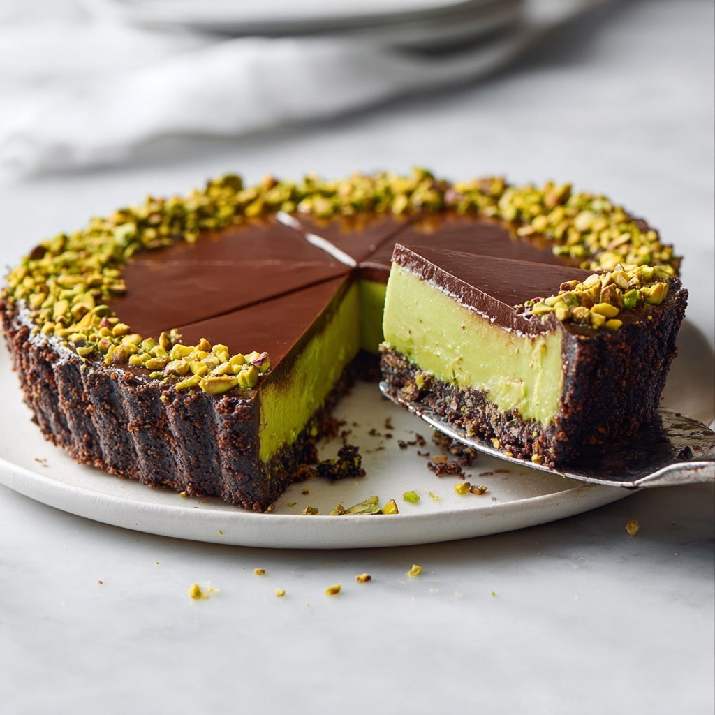 This decadent No-Bake Chocolate Tart with Pistachio Paste offers a rich, creamy ganache layered over a crunchy nutty base and topped with vibrant pistachios. Made without any baking, this elegant dessert combines raw cacao, whole nuts, and luscious coconut cream to create a naturally sweetened, vegan-friendly treat perfect for special occasions or anytime indulgence.