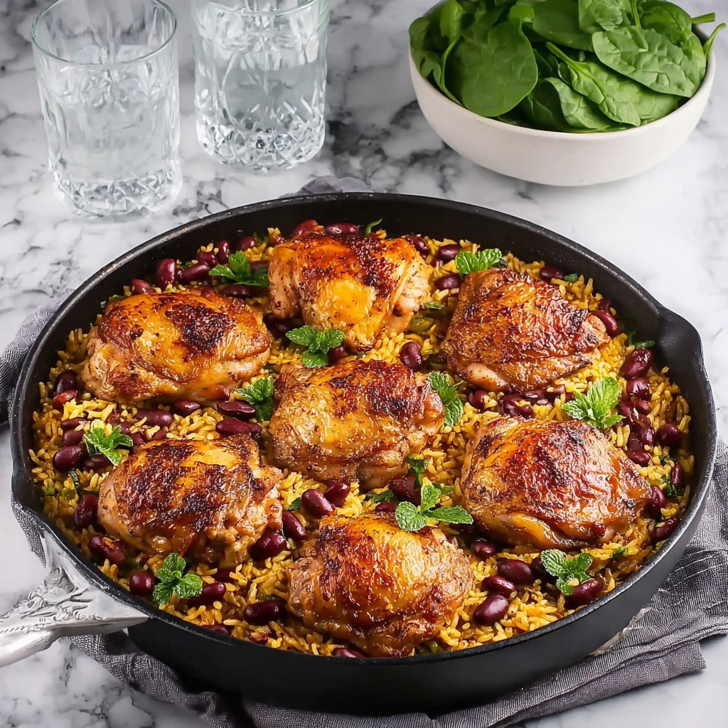 This One Pot Jerk Chicken and Rice is a flavorful Caribbean-inspired dish combining tender, spiced chicken thighs and perfectly cooked rice infused with coconut milk, kidney beans, and aromatic herbs. Easy to prepare in one oven-safe pot, this recipe marries bold jerk seasoning with comforting textures for a satisfying meal serving six.
