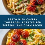 A vibrant and flavorful pasta dish combining tender pasta with bursting cherry tomatoes, sweet roasted red peppers, and fresh corn, all tossed in olive oil and garlic, then finished with fresh herbs and Parmesan cheese for a perfect weeknight meal.