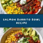 A flavorful and nutritious Salmon Burrito Bowl featuring perfectly baked salmon seasoned with chili powder and cumin, served over brown rice with black beans, corn, fresh vegetables, and a zesty Greek yogurt lime dressing. This quick and easy recipe is perfect for a healthy lunch or dinner and packed with vibrant flavors and wholesome ingredients.