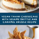 Vegan Tahini Cheesecake with Sesame Brittle and Caramel Drizzle Recipe